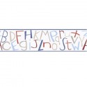 Cenefa con cuerda de tender con ropa de bebé y ositos de trapo. En color azul, crema y blanco.