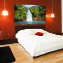 Fotomural de una playa tropical con palmeras exhuberantes y un mar de aguas cristalinas.