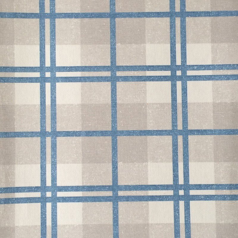 Papel pintado de un clásico y estilizado tartan en tonos cremas y rayas de tono cian.