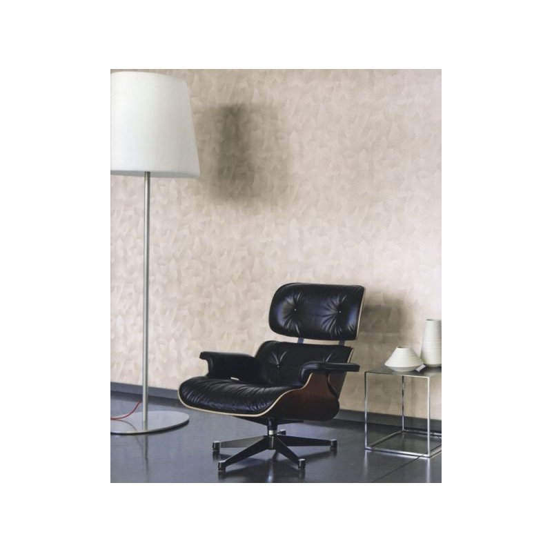 Hermoso papel pintado de estilo con diseños abstractos de motivos geométricos en color perla y aluminio con relieve medio y brillo nacarados y perlados sobre un fondo en color blanco roto con relieve medio y brillo nacarados y perlados, una fantástica opción decorativa Este revestimiento mural de la marca Casadeco fabricado en vinilo sobre tnt mide 53 cm de ancho por 10.05