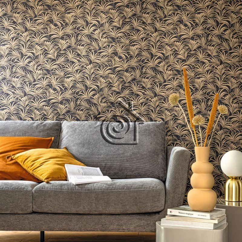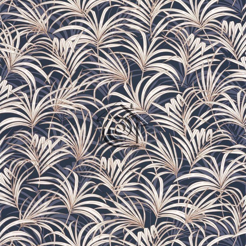 Papel pintado GAG103806162 Richard en color azul noche y cobre de la colección Golden Age de Caselio.