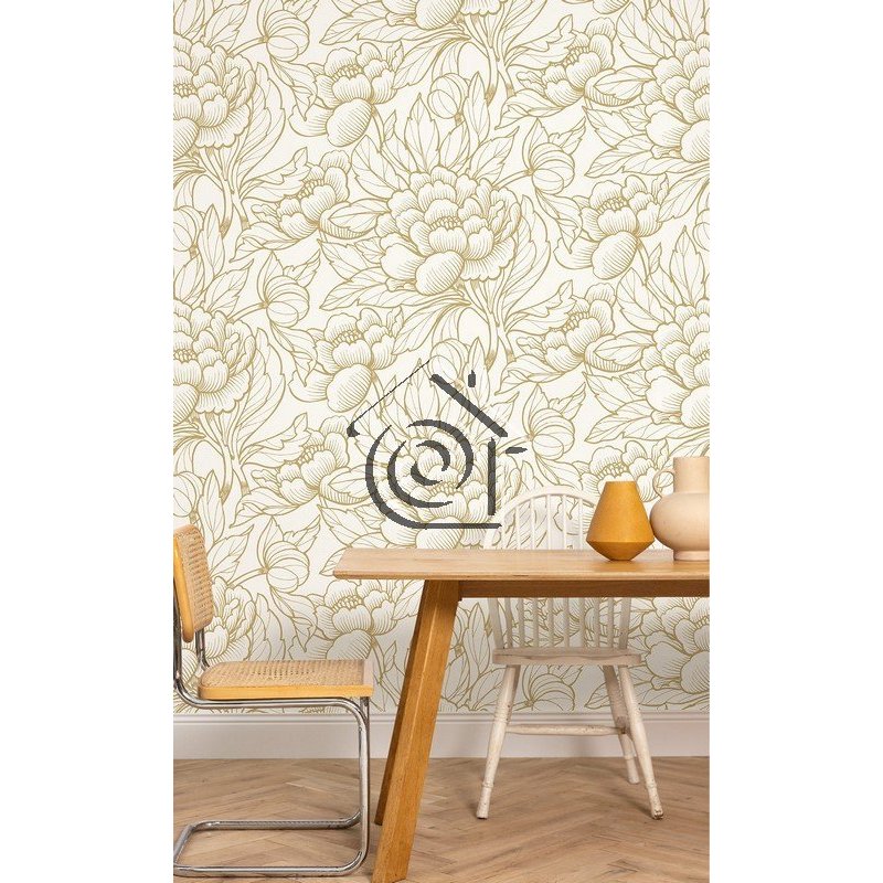 Papel pintado XXL104540020 Envergure, en color blanco y oro, de la colección XXL de Caselio.