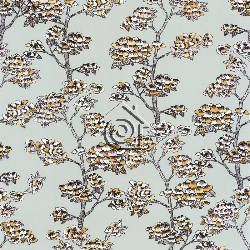 Papel pintado NGR102997032 Jardin de Kyoto en color verde agua de la colección Nos Gravures de Caselio.