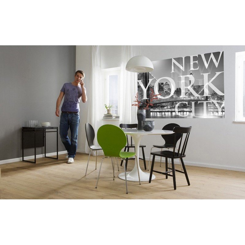 Fotomural de Nueva York en blanco y negro y las letras de la ciudad superpuestas.