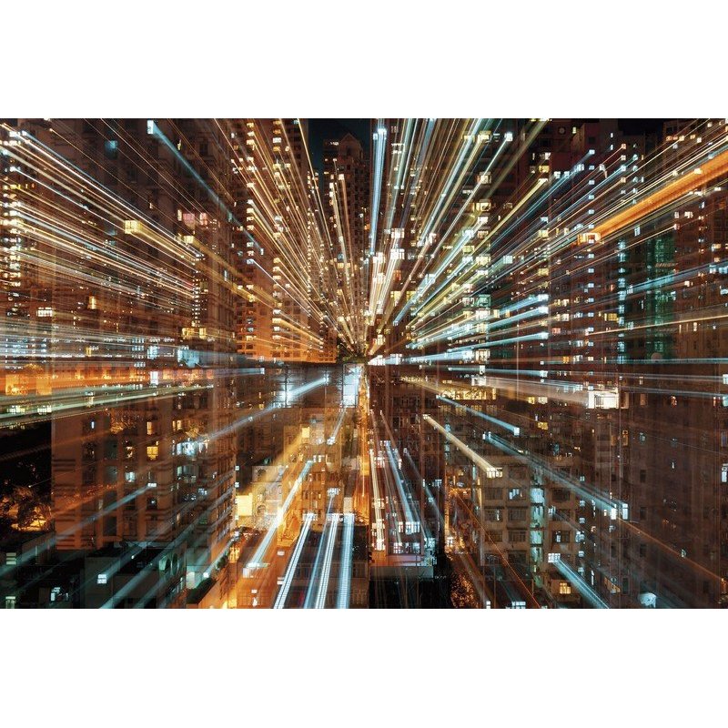 Este motivo futurista te transporta a la velocidad de la luz a través de la ciudad nocturna.