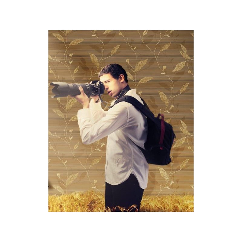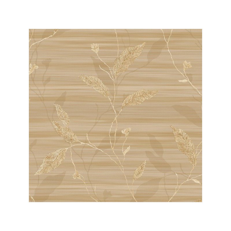 Papel Pintado con fondo de color cafe con leche y dibujo de hojas etnicas de color oro perfecto para empapelar salones con estilo y elegancia. Especificaciones:53 cm, Lavable y Fregable