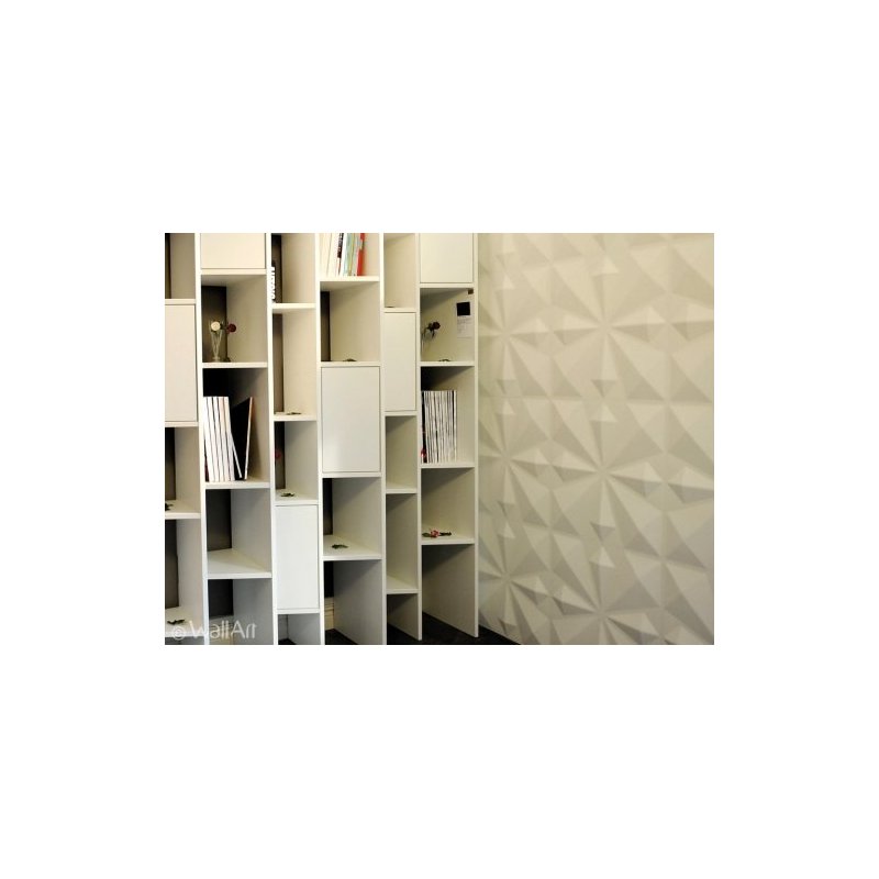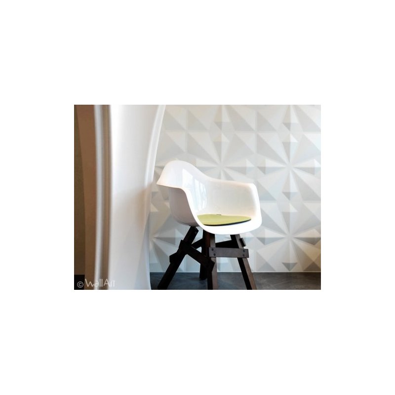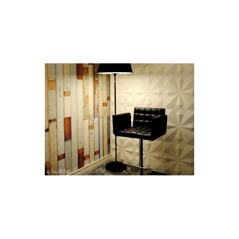 Producto natural reciclado de fibra de caña de azucar. Se fija en la pared con pegamento WAllArt (1 bote cada 4 láminas) produciendo un efecto tridimensional.
