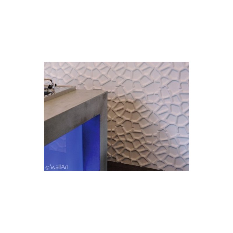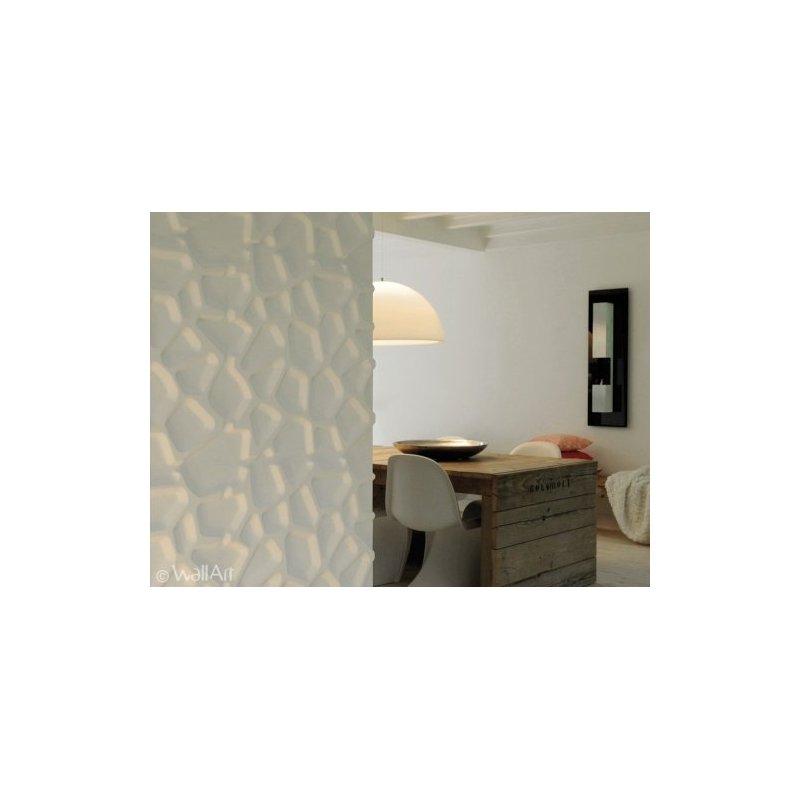 Producto natural reciclado de fibra de caña de azucar. Se fija en la pared con pegamento WAllArt (1 bote cada 4 láminas) produciendo un efecto tridimensional.