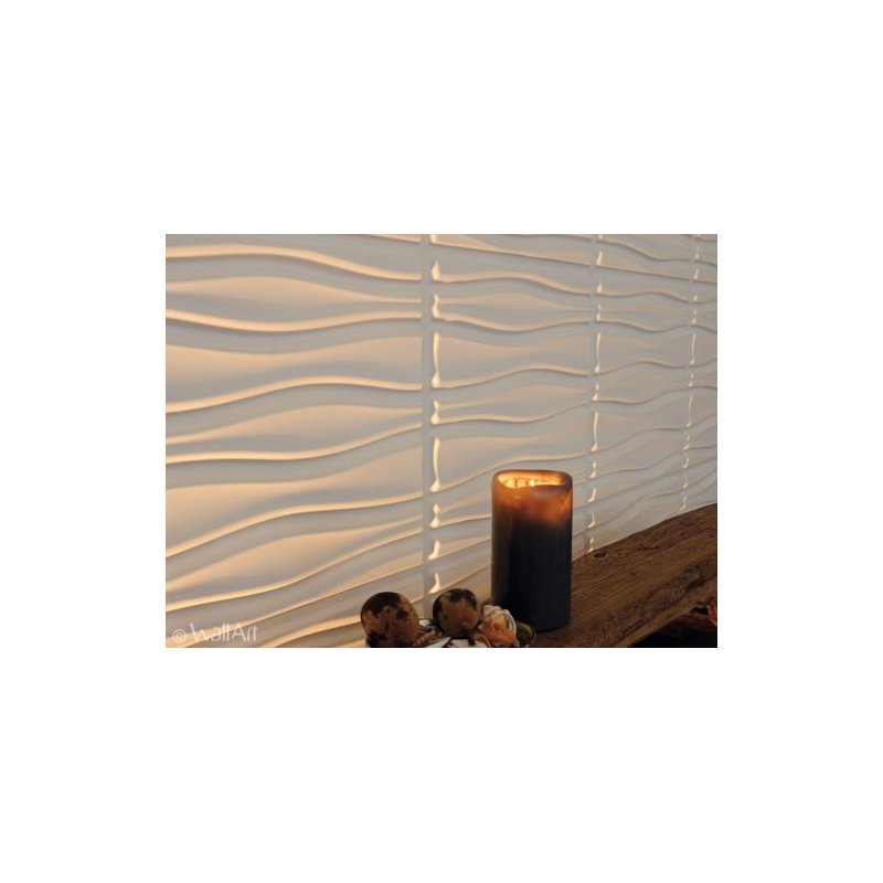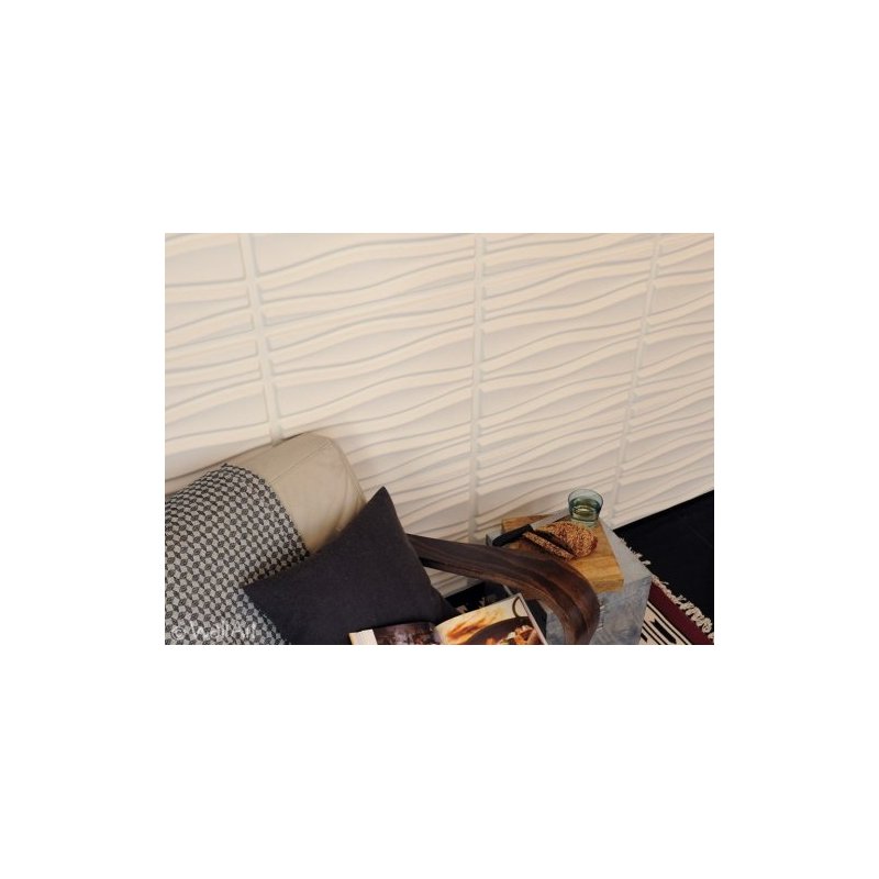 Producto natural reciclado de fibra de caña de azucar. Se fija en la pared con pegamento WAllArt (1 bote cada 4 láminas) produciendo un efecto tridimensional.