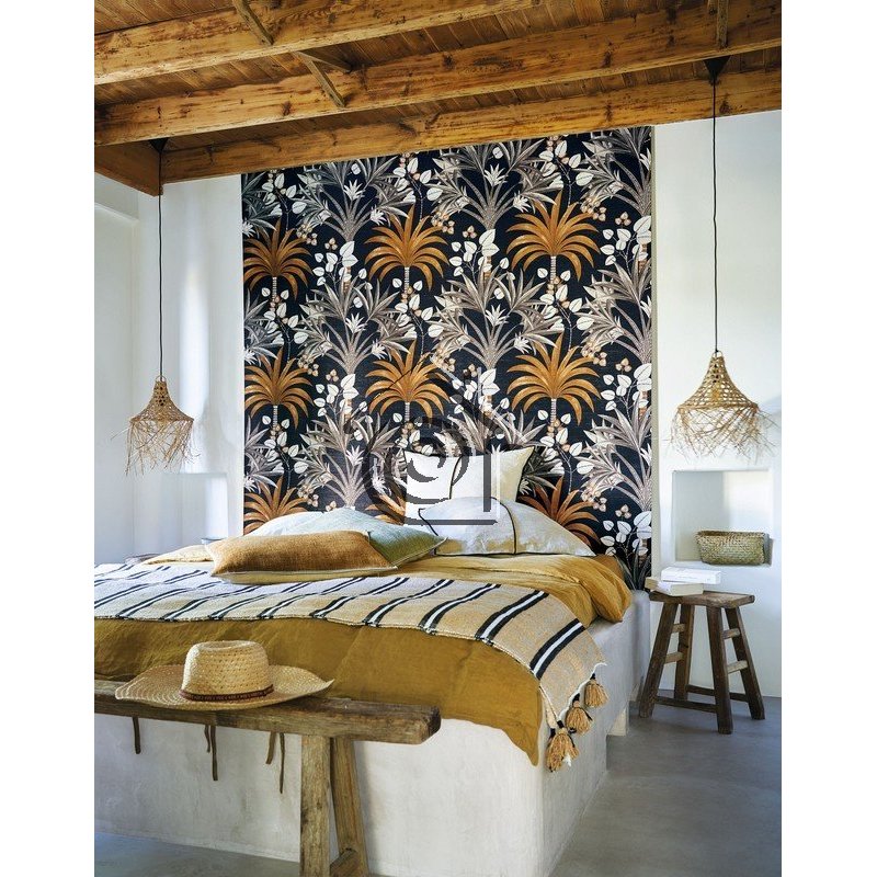 Papel pintado 75521018 Mirissa, en color tinta, ocre, gris y blanco, de la colección Aventura de Casamance.