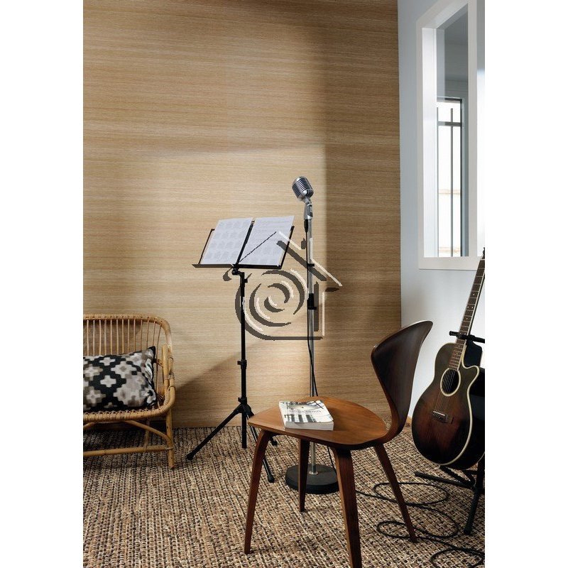 Papel pintado de vinilo con relieve y aspecto de fibra vegetal.