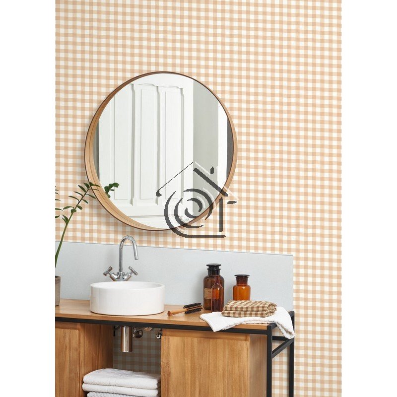 Papel pintado FLOM89261222 Vichy, en color beige, de la colección Flower Market de Casadeco.